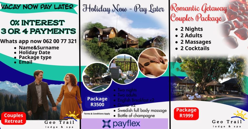Geo Trail Lodge and Spa is the perfect gate way to the Kruger National Park, Mozambique & Swaziland. A choice getaway for a romantic couples retreat or a business stop over.